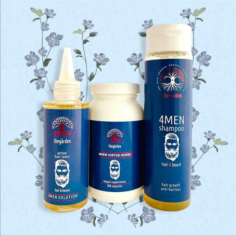 4MEN Virtue Herbs™ to mieszanka ziół, która ogranicza nadmierne wypadanie i przyspiesza porost włosów, specjalnie zaprojektowana dla mężczyzn.
