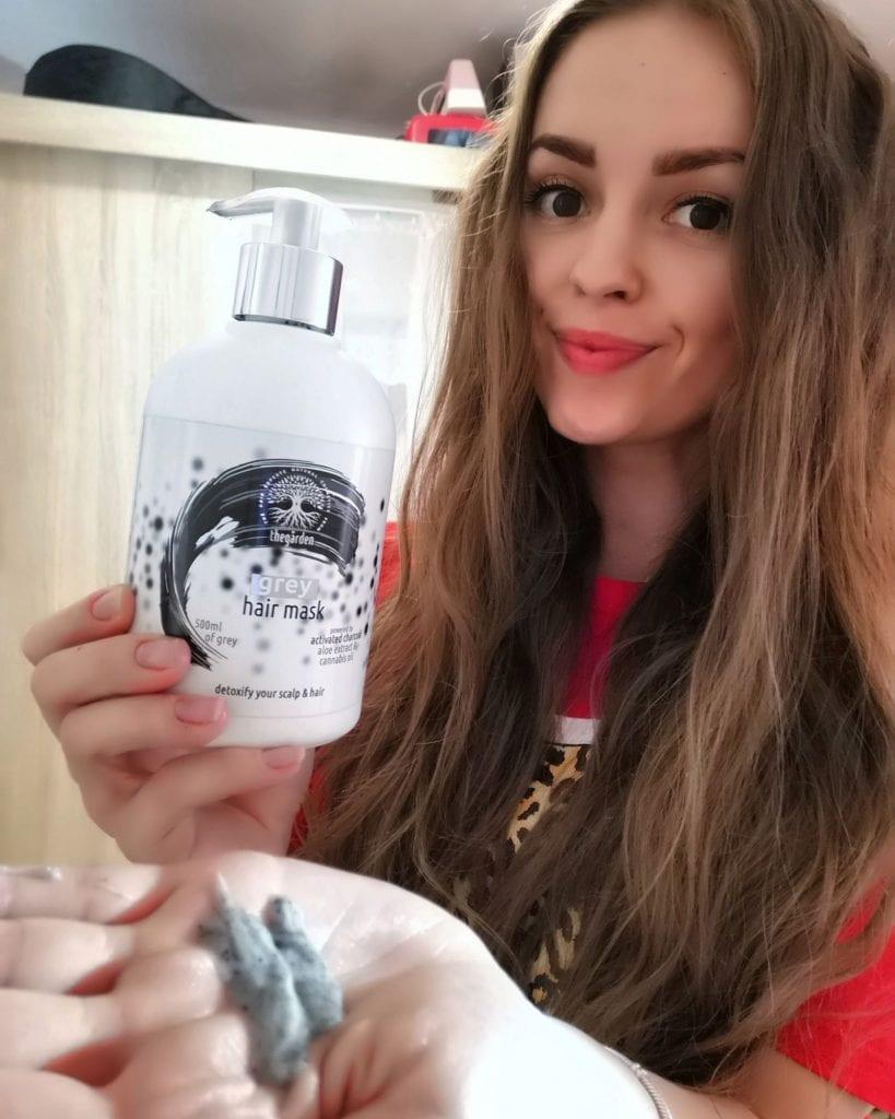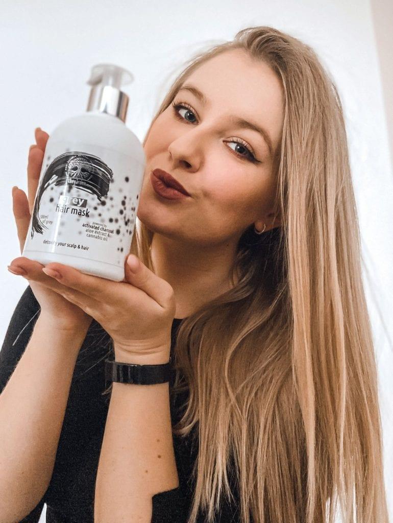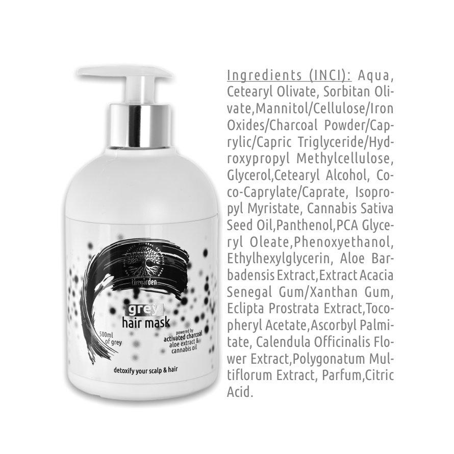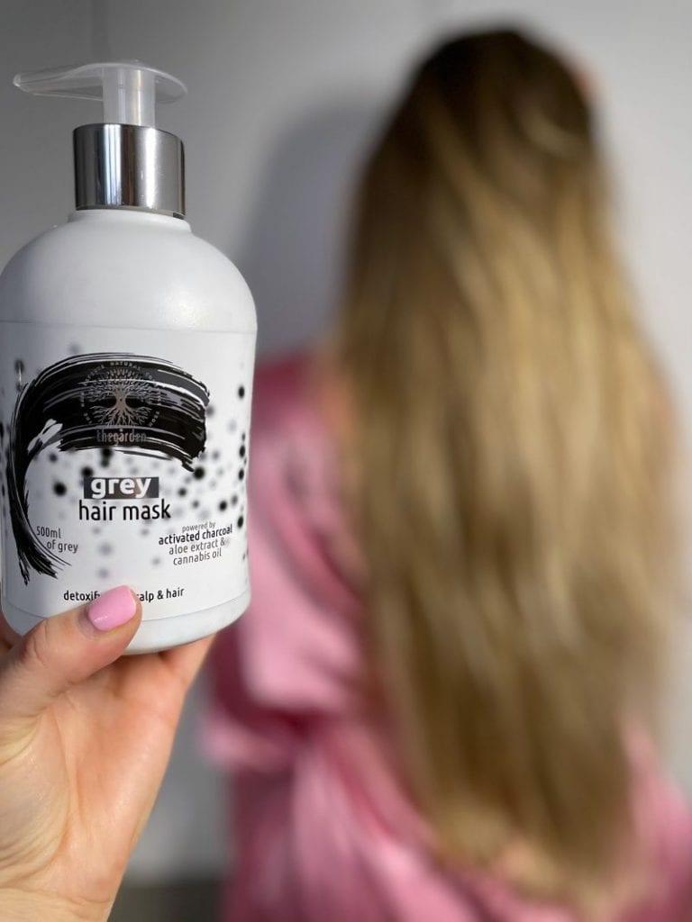 Grey Hair Mask to detoksykująca maska przed szamponem do włosów i skóry głowy z aktywnym węglem, aloesem i olejem konopii w unikalnej technologii ciekłych kryształów: