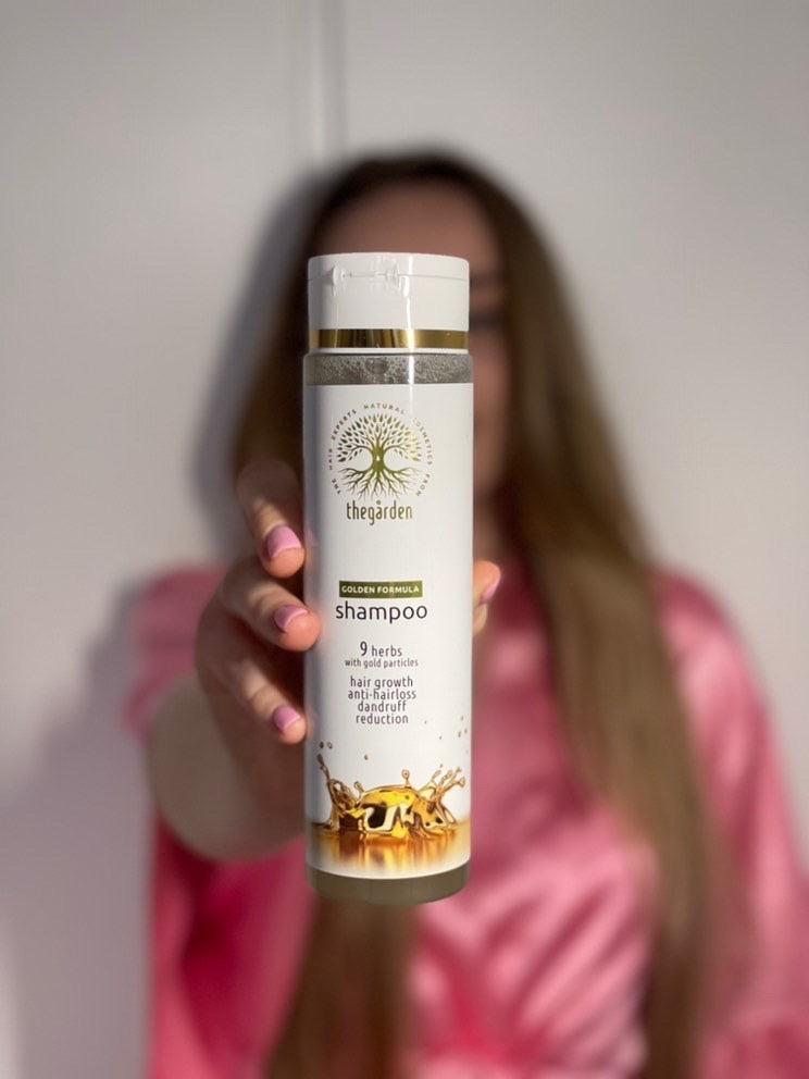 GOLDEN Formula Shampoo™ (250 ml) to oryginalny szampon do włosów z drobinkami 24-karatowego złota, w wyjątkowej proporcji z bioinformacyjnymi ekstraktami z 9 ziół.