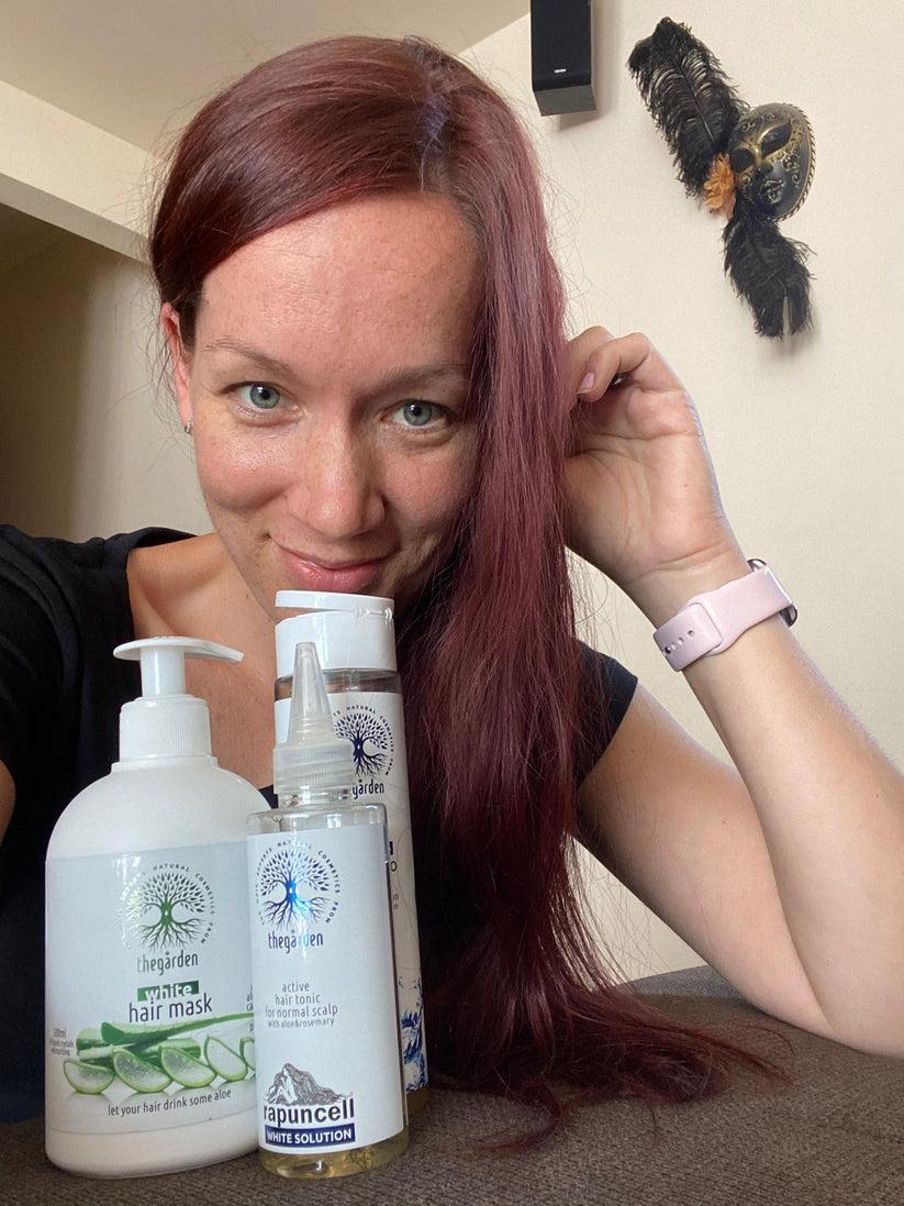 „Włosy są miłe w dotyku, nie wyglądają na tak zniszczone, a przede wszystkim po myciu nie swędzi mnie skóra głowy, co działo się wcześniej po prawie każdym produkcie do włosów.” – Mária Veselá
