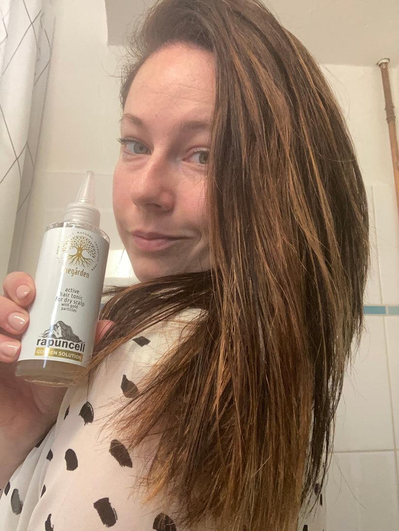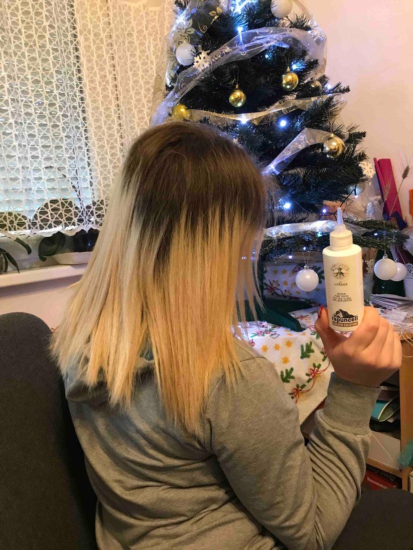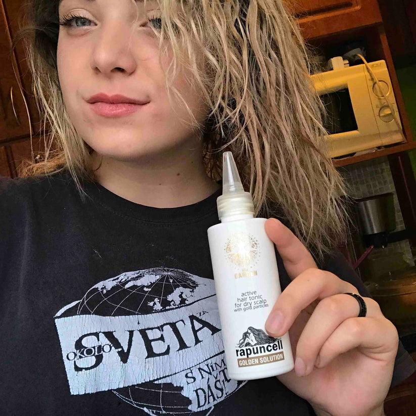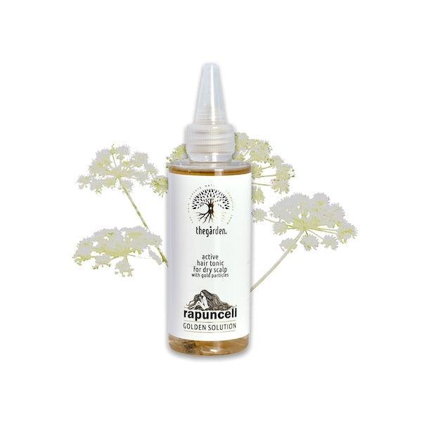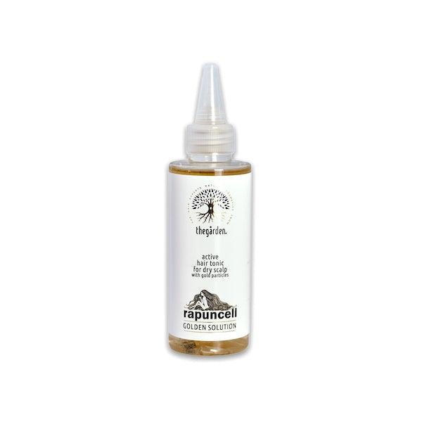 Rapuncell GOLDEN Solution™ (150 ml) to oryginalny aktywny tonik do włosów, który wspomaga ich wzrost i powstrzymuje nadmierne wypadanie, przeznaczony dla suchego typu skóry głowy.