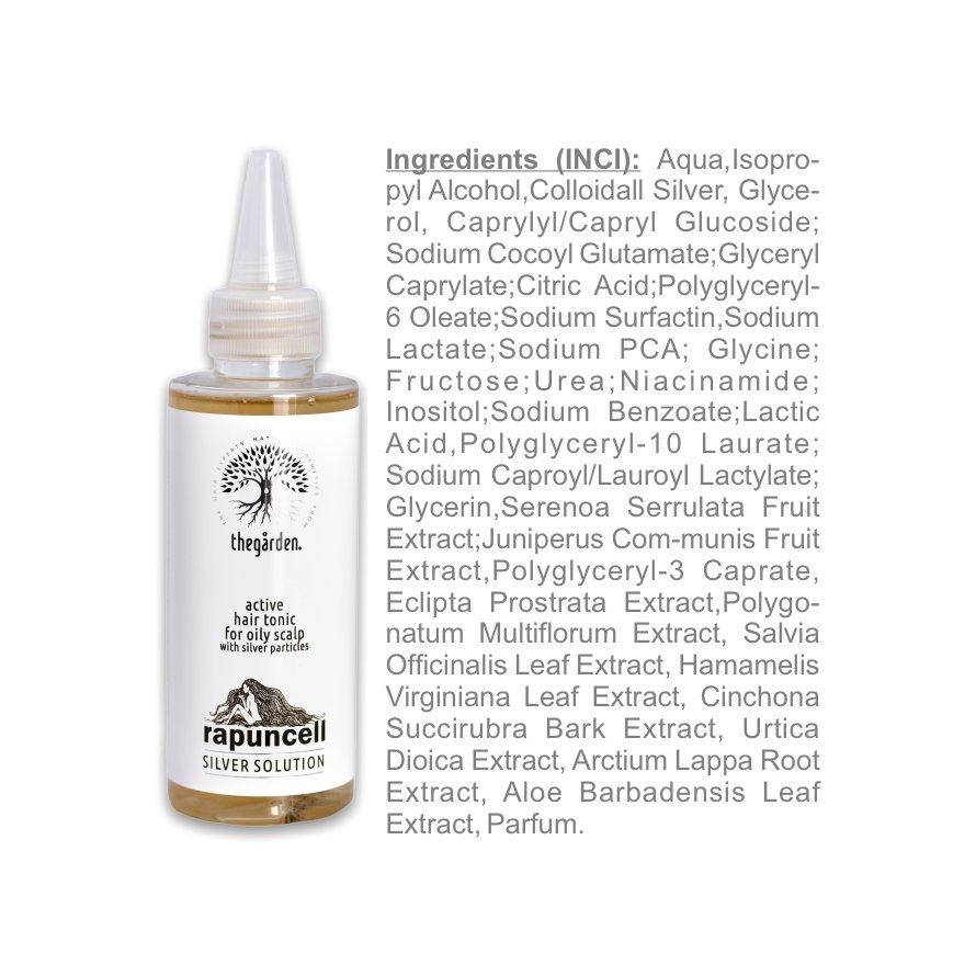 Rapuncell SILVER Solution™ (150 ml) to oryginalny, aktywny tonik do włosów, który wspomaga wzrost włosów i hamuje nadmierne ich wypadanie, przeznaczony do tłustej skóry głowy (lub z tłustym łupieżem).