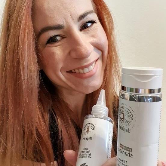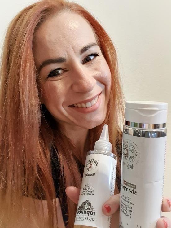 W toniku i szamponie pływają ekstrakty ziołowe i nano cząsteczki srebra koloidalnego, dzięki czemu można spodziewać się: