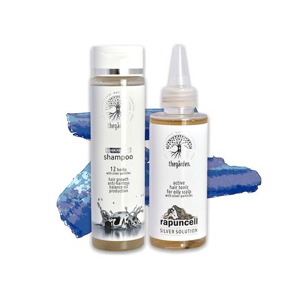 Głównym składnikiem aktywnym zestawu SILVER jest 99,9% czyste srebro (srebro koloidalne), czyli cząsteczki srebra w roztworze koloidalnym, które działają antybakteryjnie na swędzącą skórę głowy. Nieprzyjemny i uciążliwy łupież związany ze swędzeniem skóry głowy kończy się poprzez długotrwałe stosowanie srebra koloidalnego u nasady włosów. Krótkotrwałe i regularne stosowanie toniku na skórę u nasady włosów, łatwiej oddziela łupież i prowadzi do długich gęstych włosów o zdrowym połysku.
