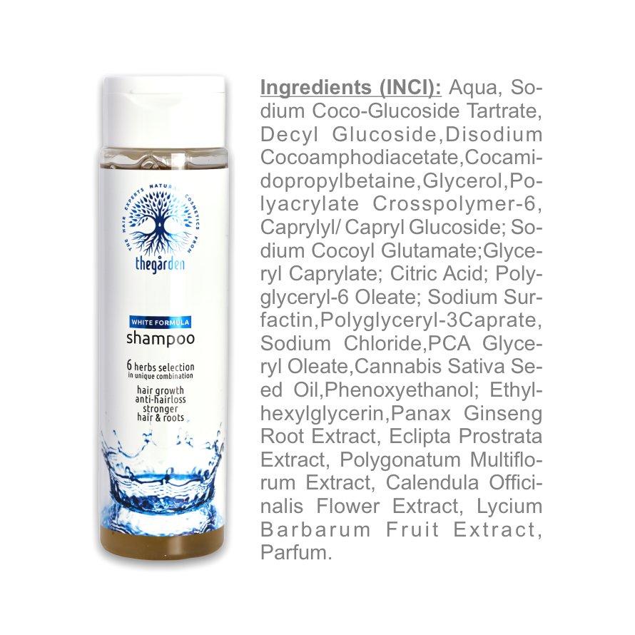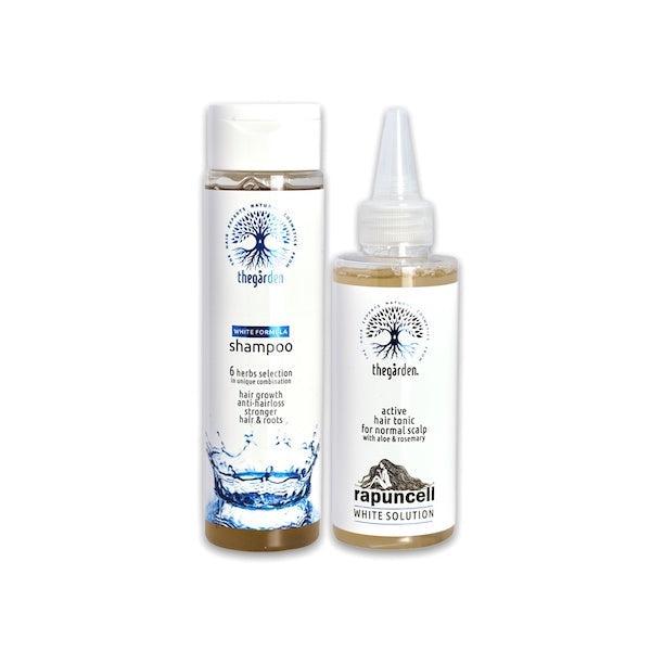 WHITE Basic Duo to funkcjonalne, nawilżające połączenie szamponu i toniku do włosów, które wspomaga wzrost włosów i hamuje ich nadmierne wypadanie, przeznaczone do pielęgnacji normalnej skóry głowy i wszystkich rodzajów włosów.