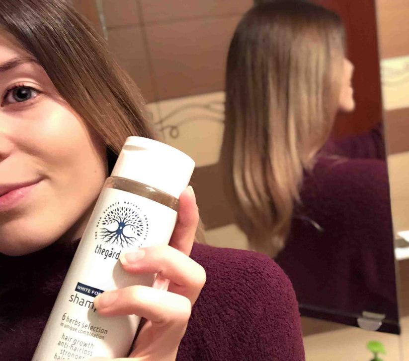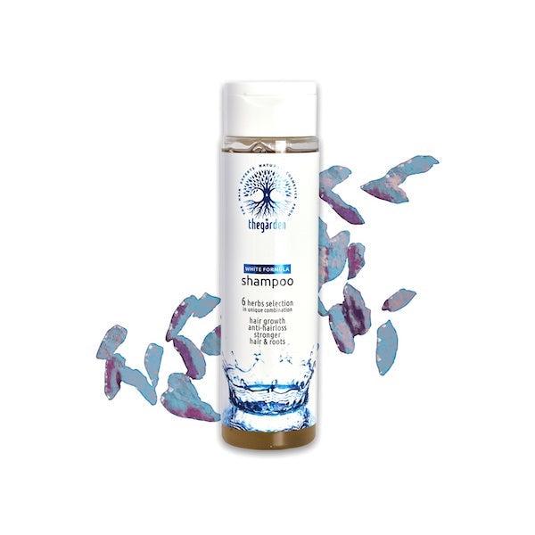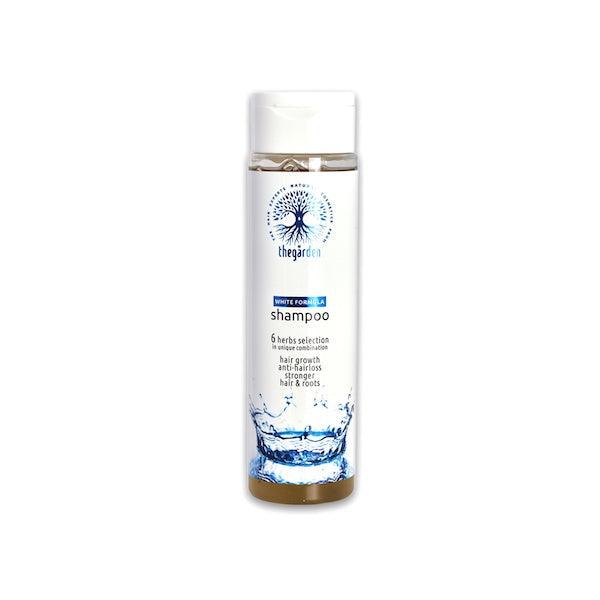 WHITE Formula Shampoo™ (250 ml) to oryginalny szampon do włosów dla normalnej skóry głowy i wszystkich rodzajów włosów. Zawiera bioaktywne składniki wybranych 6 ziół, które pomagają usunąć brud, pozostałości produktów do włosów oraz: