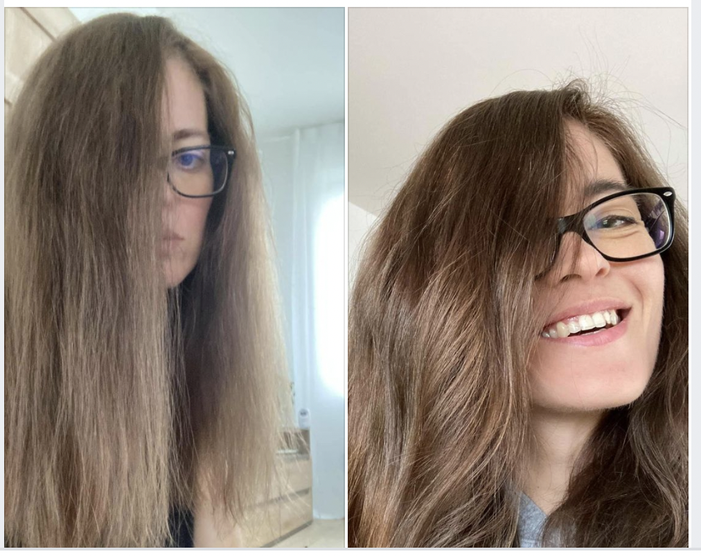 PS: Oba zdjęcia są bez stylizacji (bez suszenia, lokówki itp. Po prostu umyte i wysuszone)"